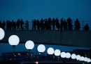 Tra le tante celebrazioni per il 25 anniversario della caduta del Muro di Berlino, avvenuto il 9 novembre del 1989, la più scenografica è stata la liberazione di ottomila palloncini gonfiati a elio e illuminati da luci LED, e distribuiti lungo i 15,3 chilometri del perimetro del Muro che divideva la città. La cerimonia si è tenuta domenica 9 novembre a partire dalle 19:30, dopo un breve discorso del sindaco di Berlino Klaus Wowereit alla porta di Brandeburgo, dove si trovava insieme all’ex leader sovietico Mikhail Gorbaciov, all’ex presidente polacco Lech Walesa e al presidente della Germania Joachim Gauck. Il rilascio dei palloncini – avvenuto uno per uno, e non tutti in una volta – è stato accompagnato dall’Inno alla gioia di Ludwig van Beethoven, realizzato dall’Orchestra filarmonica di Berlino diretta da Daniel Barenboim. Poco prima si era esibito sul palco anche Peter Gabriel, che aveva cantato Heroes di David Bowie. Il rilascio dei palloncini, biodegradabili, è durato circa 25 minuti. L’installazione si chiamava Lichtgrenze, “I Confini della Luce”: è stata ideata e progettata dai due artisti tedeschi Christopher e Marc Bauder.
