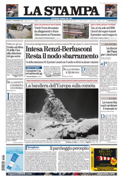 L'accordo fra Renzi e Berlusconi sulla legge elettorale, lo sciopero generale della CGIL, e la sonda spaziale atterrata sulla cometa