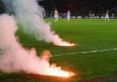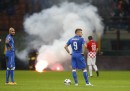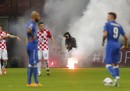 Domenica sera Italia e Croazia hanno giocato allo stadio di San Siro a Milano una partita di qualificazione agli Europei di calcio del 2016, finita 1-1. Della partita si è parlato però principalmente per alcuni disordini durante il secondo tempo dovuti al lancio di fumogeni in campo da parte dei tifosi della Croazia, che hanno indotto l’arbitro, l’olandese Björn Kuipers, a interrompere la partita per due volte, prima per tre minuti e poi per circa dodici minuti. Diciassette persone tra i circa seimila tifosi della Croazia sono state arrestate dalla polizia, che è intervenuta sia durante che al termine della partita. L’allenatore della Croazia, Niko Kovač, nelle interviste alla fine della partita ha duramente criticato i tifosi responsabili dei disordini e chiesto scusa da parte della nazionale croata.