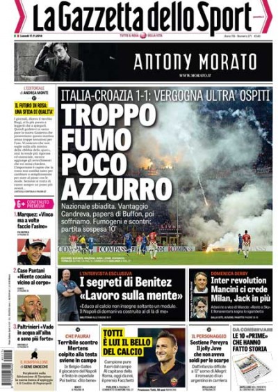 La Gazzetta dello Sport è il più importante e letto quotidiano sportivo italiano. Il primo numero della nuova versione, in edicola oggi, esce con una tiratura di un milione di copie. La Gazzetta ha organizzato per oggi molte attività promozionali – il “Gazzetta Day” – che comprenderanno l’assegnazione del premio “il Bello del Calcio Giacinto Facchetti 2014” a Francesco Totti, capitano della Roma, e una mostra delle più belle prime pagine della storia della Gazzetta.