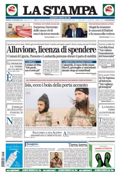 Le prime pagine di martedì 18 novembre 2014