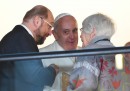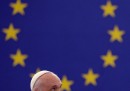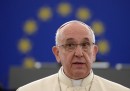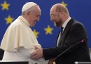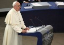 Martedì 25 novembre Papa Francesco si è recato a Strasburgo, in Francia, per una breve visita al Parlamento europeo e al Consiglio d’Europa, riuniti entrambi per l’occasione in sessione solenne. Il Papa è atterrato all’aeroporto di Strasburgo poco prima delle 10 ed è stato accolto dal ministro francese dell’Ecologia e dello Sviluppo sostenibile, Segolene Royal, dal Segretario di Stato del governo francese Harlem Désir e dal sindaco di Strasburgo Roland Riess. Dopo il Papa si è spostato al Parlamento europeo, dove è stato accolto dal presidente Martin Schulz e ha salutato una piccola folla di fedeli: tra questi c’era anche Elma Schmidt, un’anziana signora che gli affittò una camera all’epoca in cui visse in Germania.