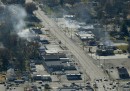 Da due giorni a Ferguson, un città nella contea di St.Louis (Stati Uniti), proseguono le proteste per la decisione del gran giurì di non incriminare il poliziotto che lo scorso 9 agosto uccise il 18enne nero Michael Brown. La polizia locale, che negli ultimi mesi è stata spesso accusata di usare misure eccessive per fermare le manifestazioni, ha arrestato decine di persone. Ci sono stati degli scontri anche piuttosto violenti e diversi manifestanti hanno dato fuoco ad alcuni edifici di Ferguson e a qualche macchina. Charlie Riedel, fotografo di Associated Press, ha realizzato alcune fotografie dall’alto per mostrare i danni provocati dagli scontri e dalle proteste.