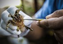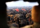 Tra le migliori foto di animali di questa settimana ce n’è una che ritrae una dozzina di pappagalli appollaiati su un’antenna parabolica a Caracas, in Venezuela (dove tra l’altro in questi giorni debutta un balletto dedicato all’ex presidente Hugo Chavez). Se siete sensibili fareste meglio ad evitare il primo piano ravvicinato di un ragno e dei suoi cheliceri, con cui inietta il veleno nelle sue prede. Per stare più leggeri ci sono un paio di belle foto di foche e di scimmie. Cambiando decisamente genere, c’è una foto di decine e decine di bufali, in attesa di essere macellati durante un rituale particolarmente cruento in onore del dio Gadhimai, a Kathmandu, in Nepal.