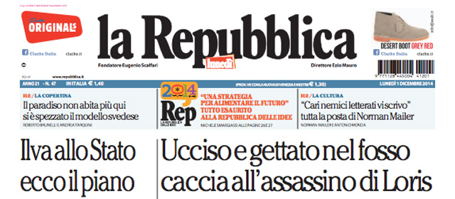 I giornali di oggi hanno notizie diverse in apertura: molti si occupano di cronaca, con le indagini sulla morte del bambino di 8 anni in provincia di Ragusa, il Corriere della Sera titola sui risultati di un sondaggio che vede in calo la fiducia nei confronti di Matteo Renzi, altri giornali, soprattutto locali, aprono con i risultati delle primarie del centrosinistra in Veneto e in Puglia, vinte da Alessandra Moretti e Michele Emiliano, altri ancora rimangono su notizie di politica interna, dalle riforme del governo alle voci sul nuovo Presidente della Repubblica, mentre i quotidiani sportivi si occupano delle vittorie della Juventus nel derby di Torino e della Roma contro l’Inter.