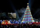 In una giornata dedicata da molti, almeno in parte, ad addobbare l’albero di Natale, è utile ricordare che questa tradizione non vale in tutti i paesi del mondo di tradizione cristiana: negli Stati Uniti e in Canada per esempio, molte famiglie addobbano l’albero subito dopo il Ringraziamento, mentre in Germania si aspetta il 24 dicembre, la vigilia di Natale. Al di là delle usanze di ogni famiglia e di ogni paese, in tantissimi posti del mondo le strade delle città sono già decorate con luci, addobbi rotondi, quadrati, appuntiti, più o meno sfavillanti e colorati, mentre le vetrine dei negozi sono piene di fiocchi, pacchetti regalo, panettoni e omini di marzapane. Di seguito le foto più belle di questi giorni in giro per il mondo: il gigantesco albero di Natale galleggiante di Rio de Janeiro, quello costruito interamente di legno riciclato in Estonia, un Babbo Natale con le cuffie per ascoltare musica nella londinese Carnaby Street e il più classico degli alberi natalizi, con luci e palline dorate, in piazza Duomo a Milano.