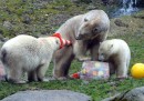 Una delle foto di animali più belle della settimana arriva dallo zoo Hellabrunn a Monaco, in Germania, dove due orsi polari hanno ricevuto due blocchi di ghiaccio con della frutta offerti loro come torte per il loro primo compleanno. Questo tipo di celebrazione con torte di ghiaccio rappresenta una scena non infrequente negli zoo che ospitano specie animali tipiche degli ambienti artici. Tra le foto che hanno avuto più circolazione, poi, c’è quella di una Salamandra infraimmaculata, una specie considerata “quasi a rischio” di estinzione, prevalentemente diffusa in alcuni paesi del Medio Oriente: in un laboratorio dell’Università di Haifa, in Israele, ne è nata una a due teste. In seguito all’interessamento dei media, i ricercatori hanno smentito che possa trattarsi di un’alterazione dovuta ad alti livelli di radioattività, suggerendo che potrebbe trattarsi di una mutazione casuale indirettamente riconducibile all’inquinamento ambientale.