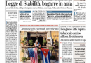 Nei titoli dei principali quotidiani a diffusione nazionale, oggi, la parola che ricorre più spesso è “caos”, associata alla difficoltà di approvazione del cosiddetto “maxiemendamento” della legge di Stabilità in Senato (che è stata approvata intorno alle 4.45 di oggi e ora tornerà alla Camera). Nei boxini, trovano spazio due notizie sugli Stati Uniti: le conseguenze dell’annuncio di rapporti più distesi con Cuba e il discorso di Obama di fine anno, con passaggi molto critici verso la Corea del Nord. I giornali sportivi si occupano di Roma-Milan, l’anticipo di oggi della sedicesima giornata di Serie A, che si giocherà alle 20.45.