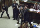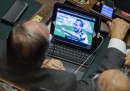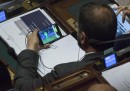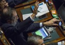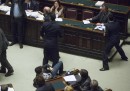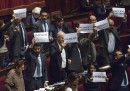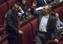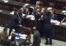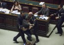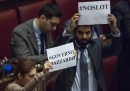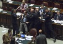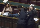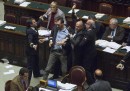 Lunedì 22 dicembre, durante l’esame alla Camera della legge di stabilità – poi approvata – diversi deputati del Movimento 5 Stelle hanno protestato contro il governo, occupandone i banchi ed esponendo alcuni cartelli. Nella mattinata, mentre presiedeva la seduta Roberto Giachetti del PD, sette deputati del M5S hanno occupato i banchi dei ministri: Giachetti ha inizialmente sospeso la discussione e poi ha espulso i deputati Davide Tripiedi, Ferdinando Alberti, Massimo Baroni, Tatiana Basilio, Luca Frusone, Gianluca Rizzo e Alessio Villarosa, che è capogruppo del M5S alla Camera. Dopo l’espulsione una ventina di parlamentari del M5S ha organizzato una manifestazione fuori da Montecitorio. Nel pomeriggio è ripresa la discussione della legge: durante le votazioni sulle misure che riguardano il gioco d’azzardo alcuni deputati del M5S hanno esposto dei cartelli con scritto, tra le altre cose, “governo d’azzardo” e “vergogna”: la presidente della Camera Laura Boldrini ha espulso i parlamentari Claudio Cominardi, Michele Dell’Orco e Vittorio Ferraresi. Tra le altre cose, la legge di stabilità prevede la conferma del bonus di 80 euro per i lavoratori che guadagnano fino a 24 mila euro.