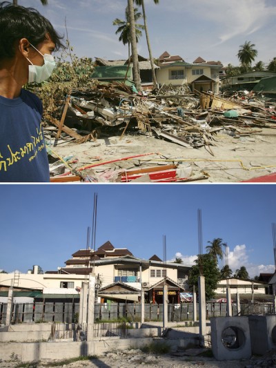 Una serie di fotografie documenta i progressi nella ricostruzione delle infrastrutture urbane e strutture turistiche nelle zone costiere colpite dal disastro del 26 dicembre 2004