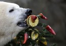 Molte delle foto raccolte nella consueta collezione di belle foto di animali di questa settimana sono legate alle feste di Natale. È quel momento dell’anno, cioè, in cui circolano più facilmente foto di animali da zoo alle prese con pacchi misteriosi, che il più delle volte si rivelano contenere del cibo speciale. Essendo alcune delle specie più feroci e temibili tra i predatori terrestri (tigri bianche, orsi polari), fa un certo effetto vedere decori e carta da regalo tra questi animali e i loro pasti. Ci sono anche foto “normali”, senza il Natale di mezzo: c’è un cane che assomiglia a un giocattolo a batterie, un vitello superstar nel selfie di una popolare sciatrice, due cavalli che corrono sulla neve fresca, e un gattino, sì, ma solo perché sta tra gli agnellini. E poi c’è anche stavolta una foto di un grosso roditore, il più amato e rispettato dalla redazione del Post, mentre si fa un bagno caldo con immutata espressione da sfinge.