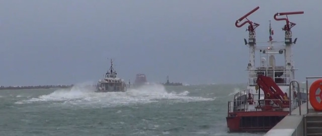 Nella foto: una barca usata per le operazioni di soccorso mentre si allontana dal porto (YouReporter.it)