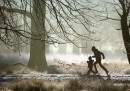 Negli ultimi giorni vi sarà bastato fare un giro su Facebook per imbattervi nelle foto di strade, case e giardini ricoperti di neve, scattate un po’ in tutta Italia. Anche le immagini pubblicate dalle agenzie fotografiche e provenienti dal resto d’Europa e dal Nord America non sono poi così diverse: gente in slitta o sugli sci nelle piste francesi e nei vicoli olandesi; turisti alle terme di Bath, in Inghilterra, che fanno il bagno nelle piscine all’aperto tra i fumi dell’aria condensata; pupazzi di neve, mentre nevica, a Bucarest, in Romania, gente che spala la neve in Piazza Rossa a Mosca, e paesini diventati tutti bianchi nei Pirenei, in Germania, in Svizzera e, insomma, un po’ ovunque. Abbiamo raccolto le immagini più belle, per quelli che stanno al caldo felici, per quelli che pur stando al caldo controllano continuamente fuori dalla finestra sperando di avvistare qualche fiocco, e per chi, bloccato in casa o di ritorno da una corsa in slittino, vuole sentirsi in buona compagnia.