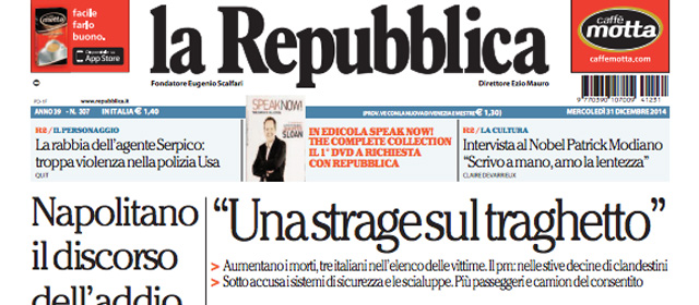 Il conto di morti e dispersi sulla Norman Atlantic, l'ultimo discorso di fine anno di Napolitano, e i dati ISTAT su recessione e disoccupazione