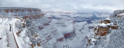 Not many out at Mather Point this hour. Limited visibility & cold & windy. #grandcanyon #NewYearsStorm -mq pic.twitter.com/wQYF800CG1