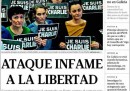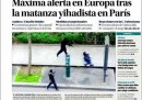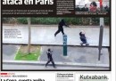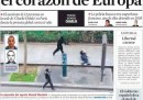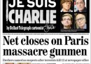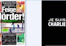 Mercoledì 7 gennaio due uomini incappucciati e armati sono entrati nella sede del settimanale satirico francese Charlie Hebdo a Parigi e hanno ucciso 12 persone. La notizia è oggi in apertura sulla gran parte dei quotidiani del mondo, anche se mancano ancora le prime pagine dei giornali dei paesi del continente americano per questioni di fuso orario. Molti parlano di “massacro”, di “attacco alla libertà” o riportano la frase “Io sono Charlie” circolata sui social network subito dopo la sparatoria. Altri, pochi, scelgono invece titoli più descrittivi. Alcuni hanno infine delle vignette anche piuttosto forti – come quella dell’Indipendent con un dito medio che esce da una pagina di Charlie Hebdo – o hanno pubblicato (anche a tutta pagina) delle copertine del settimanale satirico (il tedesco Berliner Zeitung ha sia la prima che l’ultima pagina coperta da un collage di copertine con il titolo, in francese, “Vive la Liberté”).