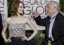 Domenica sera a Beverly Hills si è tenuta la 72esima edizione dei Golden Globes, considerata un po’ la prova generale della serata degli Oscar: come ogni anno i fotografi si sono impegnati a catturare i momenti (e i vestiti) più belli, i saluti e i baci tra gente famosa, le scene più divertenti dagli after-parties, le feste organizzate dalle grandi case di produzione dopo la cerimonia vera e propria. Quest’anno è stata presente anche la cronaca, visto che diverse celebrità hanno voluto mostrare il loro sostegno alle vittime della strage alla sede di Charlie Hebdo a Parigi mostrando cartelli, spille e cover di telefonini con la scritta “Je Suis Charlie”: tra questi Hellen Mirren, Diane Kruger, Kathy Bates e la signora Clooney, Amal Alamuddin. Proprio George Clooney, dopo aver ricevuto il premio speciale alla carriera, ha concluso il suo discorso di ringraziamento riferendosi alle persone che ieri hanno manifestato a Parigi e in tutto il mondo, e che “hanno marciato a sostegno dell’idea che non cammineremo nella paura. Je suis Charlie”. Ben più ironico e leggero è stato il discorso di ringraziamento di Kevin Spacey, premiato come miglior attore in una serie drammatica con House of Cards, che ha esordito dicendo, con l’inconfondibile voce del suo personaggio Frank Underwood, “Questo è solo l’inizio della mia vendetta”, riferendosi al fatto che è riuscito per la prima volta ad ottenere il premio dopo ben otto nomination.