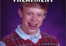 Sopra e sotto la sua testa ci sono grandi lettere bianche maiuscole che trasformano quella ridicola foto in un meme – una sorta di fumetto a un riquadro, nel quale i testi vengono riscritti continuamente e fatti circolare online. Lui è Bad Luck Brian, Brian Lo Sfortunato. Così come il meme “Grumpy Cat” è diventato un simbolo di quelli che sono di malumore, il meme di Kyle/Brian è diventato il simbolo di quelli a cui capita un colpo di sfortuna esilarante. I testi sopra e sotto le sue foto sono mini storie di un ragazzo a cui non ne va una giusta.