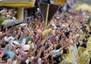 Papa Francesco sta visitando in questi giorni le Filippine, dopo che settimana scorsa era stato in Sri Lanka. Questa mattina ha tenuto una messa a Tacloban, una città che si trova sull’isola di Leyte e che fu la più colpita dal tifone Haiyan (che all’inizio di novembre del 2013 causò la morte di 7300 persone e distrusse 1,1 milioni di case). Il Papa ha tenuto una messa di massa all’aperto in un’area vicino all’aeroporto della città, scusandosi in anticipo per poter restare quattro ore meno del previsto per via di un temporale previsto nelle ore successive (ma promettendo di tornare sull’isola a temporale concluso).