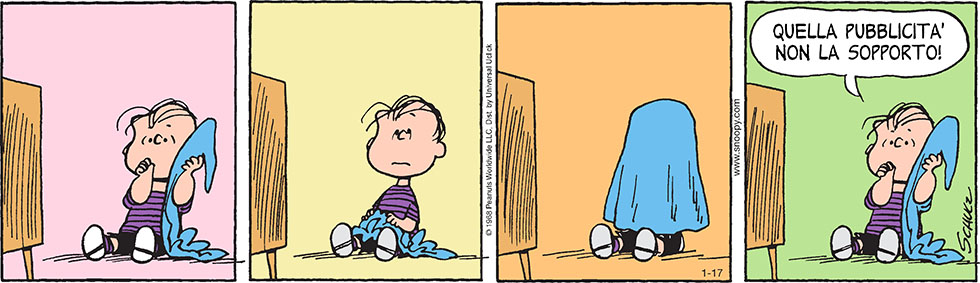 I PEANUTS sono la striscia a fumetti più famosa del mondo, pubblicata quotidianamente tra il 1950 e il 2000, quando morì a 77 anni il suo autore Charles Schulz. Ancora oggi le repliche delle strisce sono distribuite e pubblicate ogni giorno sui quotidiani di decine di paesi del mondo: in Italia, dal Post. La popolarità e l’influenza della striscia – e dei suoi personaggi più famosi, soprattutto Charlie Brown, Snoopy, Linus – si è estesa nel tempo a tutti i media e alla vita quotidiana di mezzo mondo, attraverso i loro caratteri, le loro battute, il radicamento delle loro consuetudini, e una quantità straordinaria di efficacissimi aforismi e citazioni. Le frustrazioni, insicurezze, illusioni, ansie, dei personaggi bambini hanno sempre rispecchiato quelle dei lettori adulti aggiungendovi tenerezze infantili che hanno sempre appassionato i lettori bambini: costruendo nel tempo un successo presso generazioni diversissime. Il nome Peanuts venne scelto dal distributore della striscia citando quello di un pubblico di bambini in uno show televisivo dell’epoca, e si è sempre detto che a Schulz non piacesse. Ma come dice Lucy Van Pelt, «più si invecchia, meno si è sicuri rispetto a un sacco di cose».