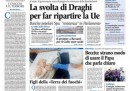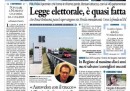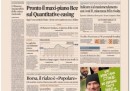 L’apertura di tutti i quotidiani di oggi è per il voto al Senato sul maxiemendamento alla riforma della legge elettorale che ha tagliato il voto su quasi tutti gli emendamenti presentati dalle opposizioni per rallentarne l’approvazione: il maxiemendamento è stato approvato con una maggioranza che comprende anche Forza Italia e ha superato così anche l’opposizione della minoranza del PD, e i giornali associano questo voto al prossimo voto per il nuovo Presidente della Repubblica, preannunciando un’intesa fra PD e Forza Italia su un nome condiviso (per il momento il più citato è Giuliano Amato). Avvenire titola invece sull’attesa per le misure di stimolo all’economia che dovrebbero essere decise oggi dalla Banca Centrale Europea.