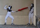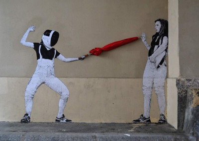Sono dell'artista francese Levalet e sono create in modo da interagire con gli elementi della città
