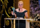 Domenica si è tenuta allo Shrine Auditorium di Los Angeles la ventunesima edizione degli Screen Actors Guild Awards, i premi sul cinema e la tv consegnati dalla Screen Actors Guild, il sindacato di chi lavora nel mondo del cinema e della tv americana. Sono una sorta di anteprima dei premi Oscar e considerati molto prestigiosi tra chi fa parte del settore: di fatto sono quelli che lavorano nel mondo del cinema e della tv che premiano i migliori tra loro. Le categorie sono suddivise tra i premi riservati al cinema e quelli per la tv, che a loro volta riguardano le miniserie o film per la tv, le serie tv drammatiche e le serie tv comiche. C’è anche un premio per la carriera, che quest’anno è stato assegnato a Debbie Reynolds.