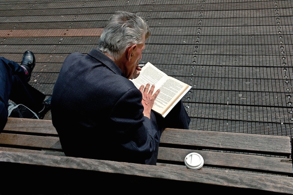 Eamonn Doyle è un fotografo, musicista e produttore irlandese, fondatore di una casa discografica e direttore di un importante festival dedicato alle arti elettroniche che si svolge a Dublino da diversi anni. Uno dei suoi ultimi progetti fotografici, diventato poi un libro che ha avuto molto successo in Irlanda e non solo, si chiama “i” e raccoglie le foto di decine di persone, soprattutto anziani, scattate per le strade di Dublino, con uno stile molto riconoscibile e originale rispetto a quello tipicamente associato alla street photography: quasi tutti i soggetti sono fotografati di spalle e dall’alto, mentre camminano per strada o sono seduti su una panchina in attesa di qualcosa, con la strada che diventa la scenografia continua di questi attimi di vita quotidiana.