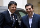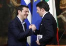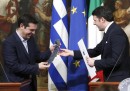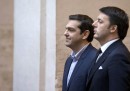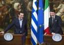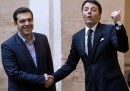 Martedì 3 febbraio il presidente del Consiglio italiano, Matteo Renzi, ha incontrato il nuovo primo ministro greco, Alexis Tsipras, al governo da poco più di una settimana grazie alla vittoria del suo partito Syriza alle ultime elezioni legislative. Renzi e Tsipras si sono incontrati a Palazzo Chigi, la sede del governo italiano a Roma, e hanno tenuto poi una conferenza stampa (con una traduzione non simultanea che ha reso tutto piuttosto lento e tortuoso). Uno dei temi più discussi è stata la posizione del nuovo governo greco sull’Unione Europea e sull’opportunità della Grecia di pagare i suoi debiti nei confronti della cosiddetta “troika”, Commissione europea, Fondo monetario e Banca centrale europea.