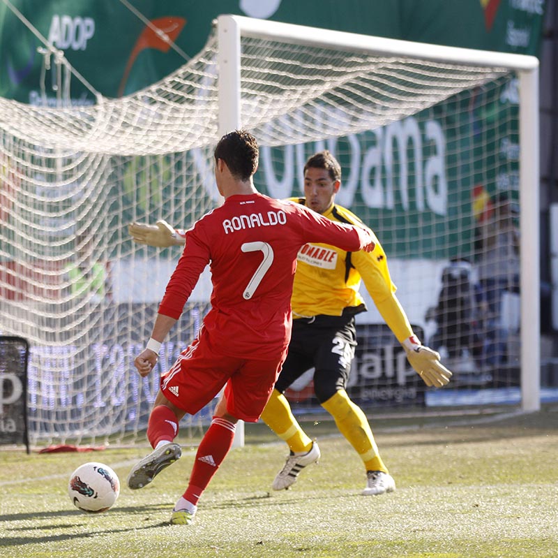 16. Cristiano Ronaldo in Spagna inizia fortissimo. Debutta nella Liga, il campionato spagnolo, il 29 agosto 2009 contro il Deportivo la Coruña, e segna il suo primo gol su calcio di rigore. In Champions League il 15 settembre segna due gol contro lo Zurigo. Il 20 settembre segna due gol in un’altra di campionato, contro lo Xerez.