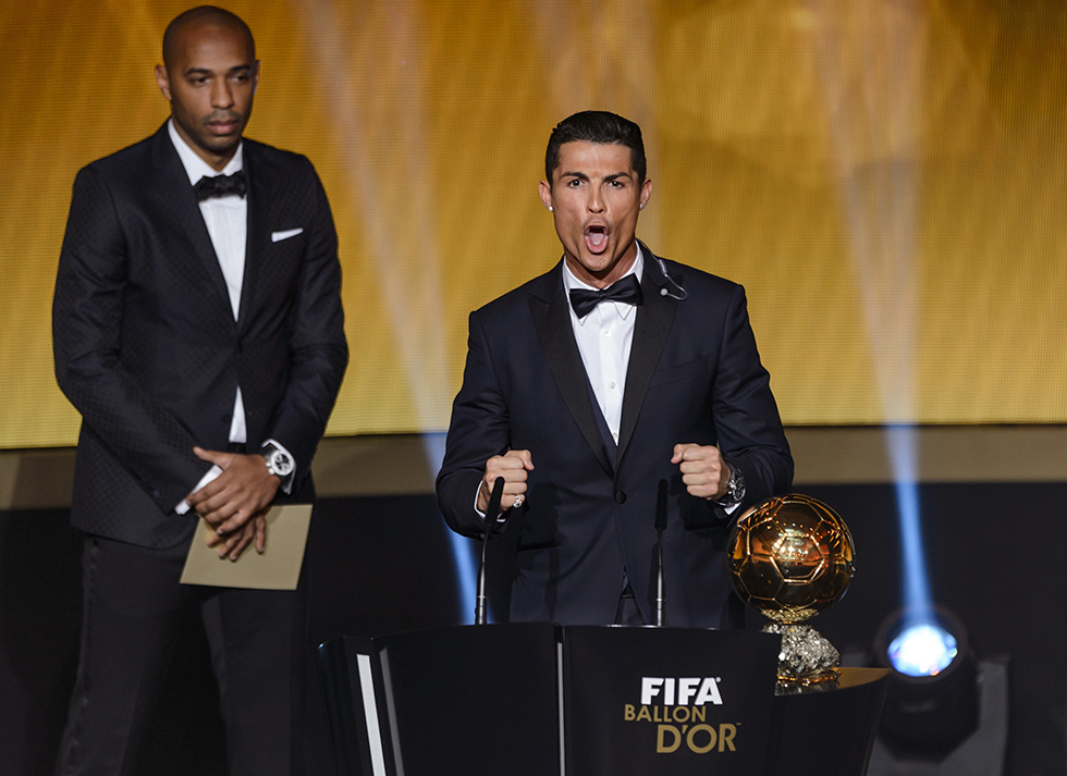 29. Il 12 gennaio 2015, a Zurigo, Cristiano Ronaldo vince per la terza volta il Pallone d’Oro, davanti all’attaccante argentino Lionel Messi e al portiere tedesco Manuel Neuer.
