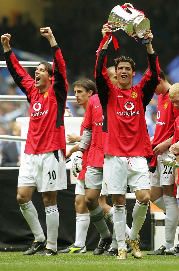 4. Nel maggio del 2004 Cristiano Ronaldo vince il suo primo trofeo col Manchester United – la FA Cup, cioè la coppa nazionale del calcio inglese – segnando un gol nel 3 a 0 in finale contro il Millwall.