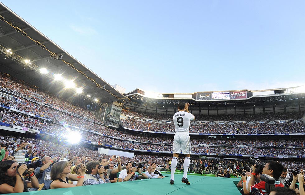 15. La presentazione di Cristiano Ronaldo avviene allo stadio Santiago Bernabeu di Madrid il 6 luglio 2009, davanti a 80mila persone. Insomma ha riempito uno stadio intero senza aver ancora toccato un pallone.