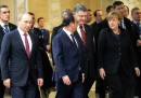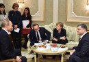 I colloqui erano cominciati ieri sera a Minsk, in Bielorussia: si sono incontrati il presidente russo Vladimir Putin, il presidente ucraino Petro Poroshenko, il presidente francese Francois Hollande e la cancelliera tedesca Angela Merkel. Fino a poco prima dell’annuncio di Putin, non sembrava fosse imminente un accordo: Poroshenko aveva detto che le condizioni volute dalla Russia erano “inaccettabili”. TASS, agenzia di news russa, aveva scritto che una bozza di accordo a un certo punto era stata trovata, ma che i leader dei ribelli separatisti nelle due regioni ucraine di Donetsk e Luhansk avevano rifiutato di firmare il documento (non è chiaro se su indicazione della Russia, o per volontà propria).