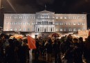 Nella notte tra giovedì 26 e venerdì 27 febbraio circa 450 persone hanno manifestato ad Atene, in Grecia, contro il nuovo piano di riforme del governo di Alexis Tsipras, approvato a inizio settimana dai ministri economici dell’Unione Europea (Eurogruppo) e che permetterà al paese di ottenere un’estensione di quattro mesi del prestito internazionale per affrontare la sua profonda crisi economica. La manifestazione era stata organizzata dall’estrema sinistra, che contesta a Tsipras di non avere mantenuto le promesse delle campagna elettorale, quando annunciò che avrebbe rivisto le misure di austerità e richiesto ai creditori internazionali una rinegoziazione del debito.