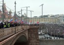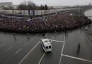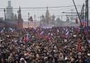 Decine di migliaia di persone – 70mila secondo gli organizzatori, 16mila secondo la polizia – hanno manifestato domenica a Mosca, la capitale della Russia, per ricordare Boris Nemtsov, noto oppositore del governo russo ucciso venerdì sera con alcuni colpi di arma da fuoco. La manifestazione è stata convocata dall’opposizione al governo. Le autorità avevano chiesto di spostarla in periferia, ma gli organizzatori avevano chiesto di rimanere nel centro della città e di attraversare il ponte sul quale Nemtsov è stato ucciso, il ponte Moskvoretsky che si trova vicino al Cremlino, la zona di Mosca dove ci sono le più importanti istituzioni governative della Russia, tra cui la residenza del presidente. Parte dei manifestanti sono riusciti a unirsi alla manifestazione solo nel pomeriggio dopo essere rimasti bloccati, a causa della folla, alle uscite della metropolitana. Si è trattato del più grande evento organizzato dall’opposizione negli ultimi tempi e ricorda i grandi cortei del 2011 e del 2012 contro Vladimir Putin.
