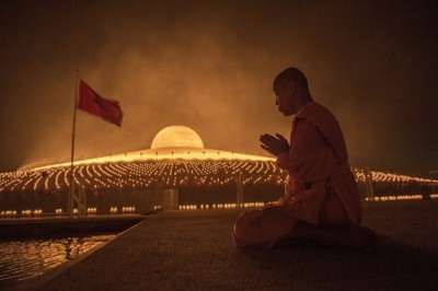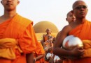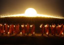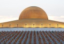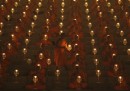 Makha Bucha è un’importante festività buddista, celebrata in Thailandia, Cambogia, Laos e Birmania durante la luna piena del terzo mese lunare del calendario buddista. Commemora l’ordinazione dei primi 1.250 monaci fatta da Buddha nove mesi dopo aver ricevuto l’Illuminazione, 2.558 anni fa: in quell’occasione Buddha insegnò anche i principali precetti della dottrina. Quest’anno la festa cade il 5 marzo: i fedeli lo passeranno cercando di compiere buone azioni e tenendosi lontano da quelle malvagie, cercando di purificare la mente e pregando nei templi. In Thailandia la sera prima di Makha Bucha i monaci hanno organizzato, come al solito, una veglia con candele, fiori e incensi. Uno dei posti più suggestivi in cui vederla – come mostrano bene queste foto – è il tempio di Wat Phra Dhammakaya, che si trova nella provincia di Pathum Thani ed è uno dei più prestigiosi del paese.