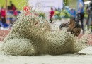 Tra le foto sportive più belle della settimana c’è quella di Alessia Trost, 21enne italiana che ha vinto la medaglia d’argento per il salto in alto agli Europei indoor di atletica leggera a Praga: Torst ha saltato 1 metro e 97 centimetri. Un’altra foto notevole è quella dell’esultanza del centrocampista egiziano Mohamed Salah, acquistato da poco dalla Fiorentina dal Chelsea in cambio di Juan Cuadrado, in una partita di Coppa Italia contro la Juventus: Salah ha segnato due gol e la Fiorentina ha vinto – allo Juventus Stadium, dove la Juventus non perde quasi mai – per 2 a 1. Un’altra bella foto arriva da Genova, dove durante una partita di Serie A tra Sampdoria e Cagliari l’attaccante camerunense Samuel Eto’o si è fermato ad allacciare le scarpe del portiere del Cagliari Zeljko Brkic.