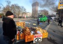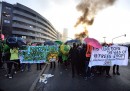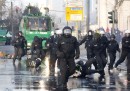 Oggi a Francoforte si inaugura la nuova sede della Banca Centrale Europea, e decine di organizzazioni che fanno parte del movimento anti-capitalista “Blockupy” hanno organizzato una manifestazione di protesta. Sono in corso degli scontri con la polizia che sta utilizzando idranti, gas lacrimogeni e manganelli e si hanno notizie di manifestanti feriti e di circa 350 arresti. Le proteste erano già iniziate durante la notte tra martedì 17 e mercoledì 18 marzo: alcuni attivisti avevano lanciato dei sassi contro il municipio, incendiato diverse auto e cassonetti e occupato i binari della stazione e le principali strade della città. Claudia Rogalski, portavoce della polizia di Francoforte, ha detto che «ci sono stati focolai di violenza in diverse zone della città» e che otto agenti sono rimasti feriti. Durante tutta la giornata di oggi sono in programma manifestazioni e sit-in: sono attese circa 10 mila persone in totale provenienti anche da altri paesi europei, Italia compresa.