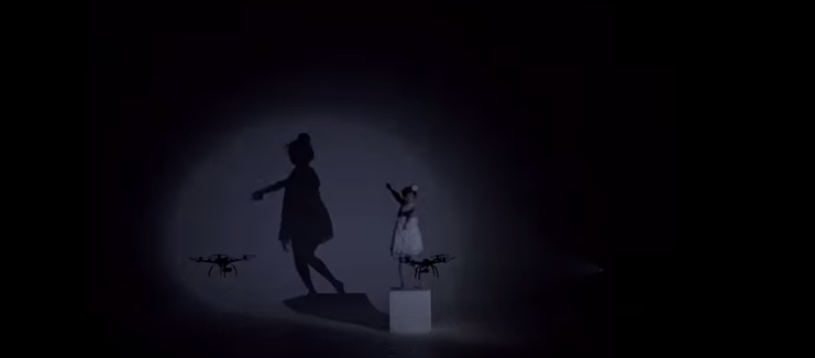 Shadow è un breve spettacolo di danza in cui una ballerina si esibisce in una coreografia al buio e viene illuminata da tre droni su cui sono montate torce elettriche.