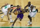 Nel 2008 fu ceduto agli Houston Rockets, dove giocò bene, arrivando con la squadra ai playoff e uscendo al secondo turno contro i Los Angeles Lakers, che avrebbero vinto il titolo. L’anno dopo Artest andò proprio ai Lakers, che in quel periodo erano probabilmente la squadra più forte di tutta la NBA: ci giocavano, tra gli altri, Kobe Bryant e Pau Gasol. Artest si inserì bene e diventò titolare, pur tenendo una media un po’ più bassa del solito, intorno agli 11 punti a partita. Ebbe quella che in questi casi viene definita una “rinascita”, e giocò soprattutto degli ottimi playoff. I Lakers andarono in finale contro i Boston Celtics: la serie arrivò fino a gara 7, in cui Artest segnò 20 punti, tra cui un canestro da tre decisivo a un minuto dalla fine. I Lakers vinsero il titolo, e dopo la vittoria Artest tenne questa agitata conferenza stampa.