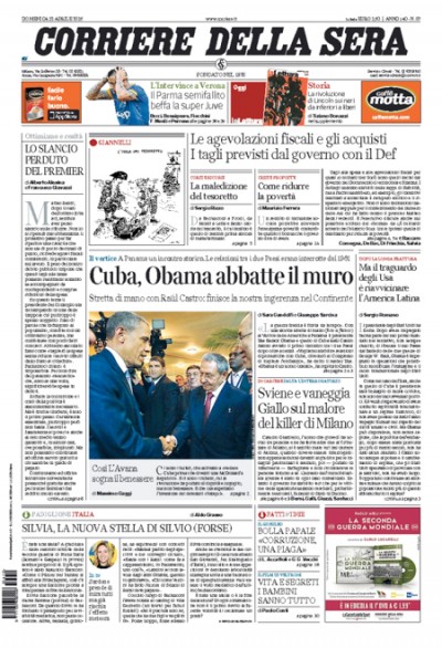 L’incontro tra Barack Obama e Raúl Castro, le misure contenute nel DEF, il Parma che ha battuto la Juventus
