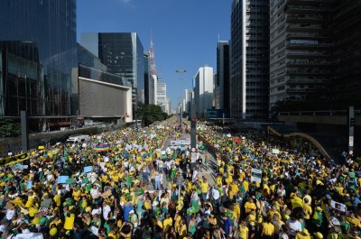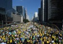 Domenica 12 aprile in Brasile centinaia di migliaia di persone hanno partecipato a una manifestazione contro la corruzione e il governo di Dilma Rousseff. Secondo gli organizzatori all’iniziativa hanno partecipato circa 1,5 milioni di persone, mentre la polizia ha stimato che abbiano manifestato in 700mila. Molti manifestanti hanno indossato la maglia della nazionale di calcio brasiliana e sventolato bandiere del Brasile, chiedendo le dimissioni di Rousseff e di vari componenti del governo accusati di corruzione e coinvolti in indagini giudiziarie. A metà marzo era stata organizzata un’altra serie di manifestazioni in tutto il Brasile cui aveva partecipato almeno un milione di persone.