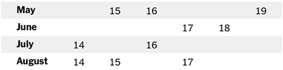 15 – 16 – 19 maggio;