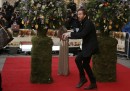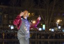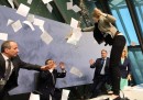 Spesso alcune delle foto più belle, e molti fotografi lo sanno bene, vengono scattate durante quelli che vengono definiti “fuori programma”: è il caso per esempio della foto dell’attivista che ha lanciato volantini e coriandoli addosso al presidente della Banca Centrale Europea Mario Draghi, durante una conferenza stampa a Bruxelles, e che ha subito fatto il giro del mondo. Ma anche tra gli eventi “programmati” di questa settimana si sono visti personaggi e facce notevoli, come l’ultima sfilata di Gisele Bundchen, a San Paolo, o Benedetto XVI che beve una birra in pieno stile bavarese durante il suo compleanno a Castel Gandolfo. Oltre al primo weekend del festival di Coachella e alla cerimonia degli MTV Movie Awards, infine, ci sono state diverse cerimonie, come quella dei Lawrence Olivier Awards a Londra, in cui sono stati premiati, tra gli altri, Kevin Spacey ed Angela Lansbury, e la prima mondiale di Avengers: Age Of Ultron a Los Angeles.