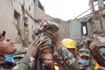 Le foto del bambino ritrovato in mezzo alle macerie del terremoto in Nepal