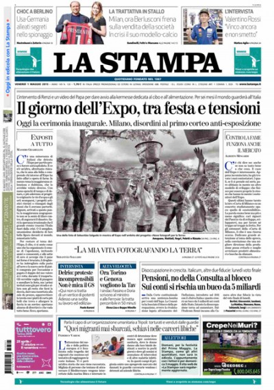I principali quotidiani di oggi si occupano in apertura di notizie diverse: molti titolano sulla decisione della Corte Costituzionale che ha dichiarato illegittimo il blocco dell’adeguamento all’inflazione delle pensioni più alte deciso nel 2011 dal governo Monti, altri aprono sull’inaugurazione dell’Expo di Milano e sulla manifestazione di protesta di ieri, altri ancora collegano le celebrazioni per la festa del lavoro di oggi con i nuovi dati negativi sulla disoccupazione in Italia diffusi ieri dall’ISTAT.