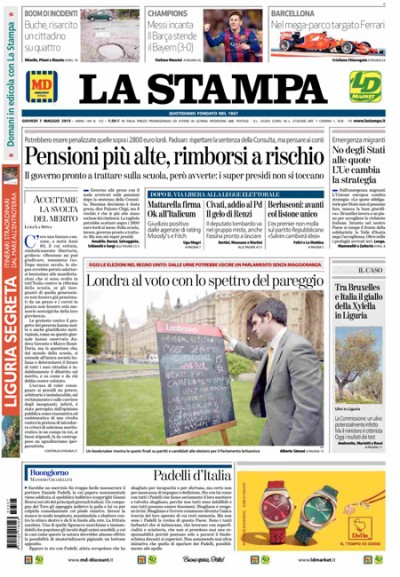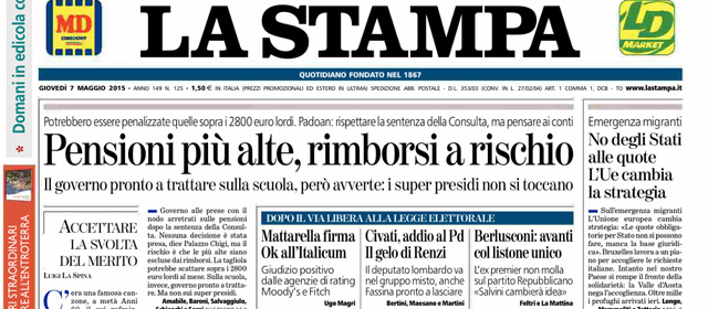 Le prime pagine di giovedì 7 maggio 2015