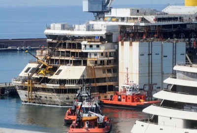 L’11 maggio sono iniziate le operazioni che hanno portato il relitto della Costa Concordia verso il molo dell’ex Superbacino del porto di Genova, da dove sarà smantellata e demolita. La Costa Concordia – naufragata il 13 gennaio del 2012 a poca distanza dall’Isola del Giglio – si trovava nella banchina del porto di Pra’, a Genova, dal luglio 2014. Nei 10 mesi durante i quali è stata ormeggiata a Pra’ la nave è stata alleggerita di quasi 6mila tonnellate di materiali. Il relitto è stato agganciato a 6 rimorchiatori che verso le 18.30 dell’11 maggio hanno iniziato la navigazione verso l’ex Superbacino di Genova, dove il relitto è arrivato nella mattina del 12 maggio. Una volta finite le operazioni di ormeggio sulla banchina del molo inizieranno i lavori di smantellamento e riciclo dei materiali che compongono la Costa Crociera.