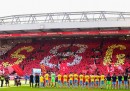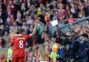 Ieri il calciatore inglese Steven Gerrard ha giocato la sua ultima partita in casa con il Liverpool, la squadra con cui ha giocato tutte le partite da professionista. Il Liverpool ha perso in casa per 3-1 contro il Crystal Palace, ma sia prima che dopo la partita l’attenzione era tutta per Gerrard, che ha 34 anni e che la prossima stagione giocherà coi Los Angeles Galaxy. Gerrard è entrato in campo accompagnato dalle sue tre figlie, ed è stato accolto con lunghi cori e striscioni dei tifosi, che come di consueto prima della partita hanno cantato l’inno della squadra “You’ll Never Walk Alone”.